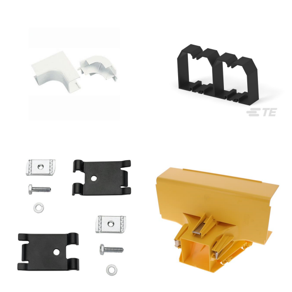Wire Ducts or Raceways are designed to hold wires and cables that are not strung through a wall, ceiling, or inside an electrical cabinet. The characteristics are wire duct type, height, length, width, mounting type, and material. The wire duct types are flexible, round hole (raceway), slotted (raceway), solid (raceway), and solid wall with mounting types of adhesive, bracket mount, DIN Rail fasteners, fastener, rivet, and screw.