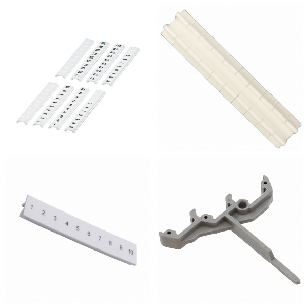 Terminal Block Accessories are supplementary items such as end caps, base strip, brackets, busbar, coding key, connecting link, dummy plug, lighting indicator, terminals, and a retaining clip plus many others used with terminal block connectors.