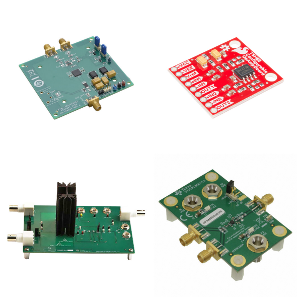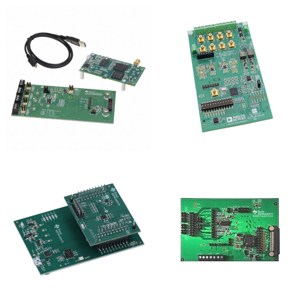 Evaluation boards are produced by a manufacturer to allow prospective users a convenient way to characterize device behavior in context of a known-good implementation. Types of evaluation boards include analog to digital converters (ADCs), audio amplifiers, digital to analog converters (DACs), complex logic (FPGA, CPLD), MCU, DSP, expansion boards, daughter cards, LED drivers, linear voltage regulators, op amps, sensors, RF, RFID, DC/DC & AC/DC (Off-Line) SMPS, and more.