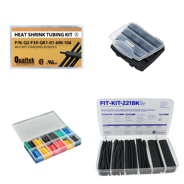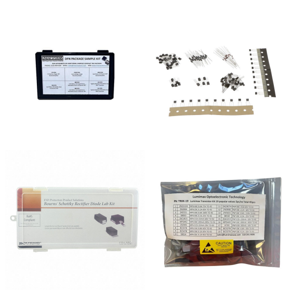 A kit product is a collection of similar items that differ in some way and are intended to be convenient for development, repair, or evaluation purposes. For example, common gauge wire of different colors, timing crystals of different frequencies, resistors or inductors of different values, fuses of different sizes and current ratings, heat shrink tubing of different sizes, LEDs of different colors, etc.