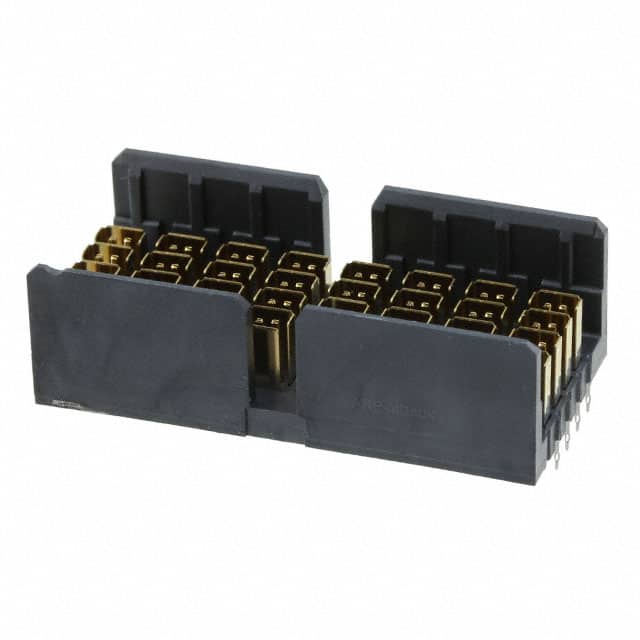Details Description | 64 Connector Header, Male Pins and Blades Through Hole Black Dual Beam, Center |